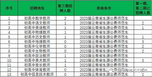 年轻的、充满活力的安宁市石江学校,需要年轻有为、激情澎湃的你加盟,参与学校的发展、建设,学校在2023年将提供以下岗位供你选择(所有岗位都是公办编制),期待你的到来。