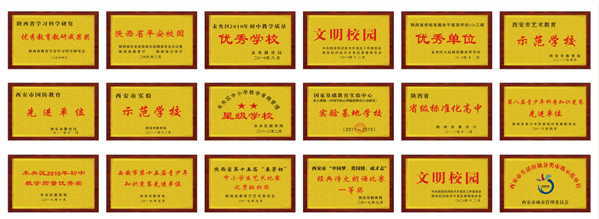 建校17年来,学校先后取得“陕西省标准化高中”“陕西省中小学实验室标准化示范学校”“西安市艺术教育示范学校”“西安市国防教育先进单位”“西安市垃圾分类示范校”“经开区文明单位”以及省市区三级平安校园等称号,并连续八届荣获教学质量优秀学校荣誉。同时学校还获得了西安市中华经典诗文朗诵、西安市“春芽杯”艺术展演、西安市青少年科普知识竞赛、西安市中学生篮球联赛等近百项社会荣誉。