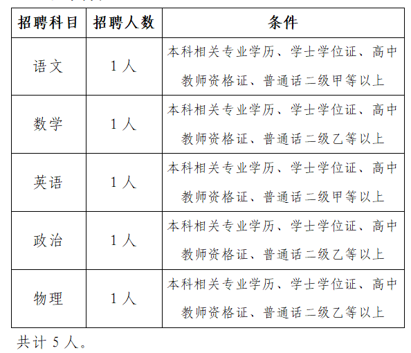 4、省级以上(含省级)师范类院校毕业,专业对口,具有相应岗位教师资格证书,大学本科及以上学历,普通话二乙以上。