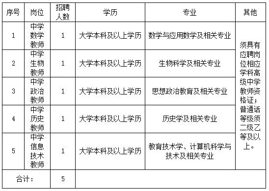 现根据学校发展需要,面向社会公开招聘编外教师5人,所聘人员与在编人员享受同等待遇。