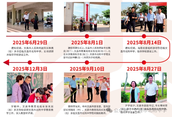 文昌市北附中学自筹建以来,始终得到各级领导和有关部门的高度重视。各级领导深入校园一线,实地了解办学推进情况,指导校园建设、教育教学、规范管理和安全运行等工作,助力学校稳步推进高质量发展。