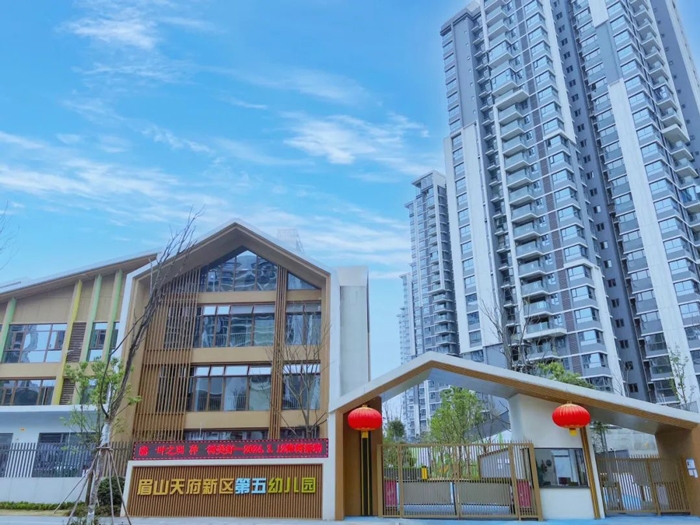 眉山天府新区第五幼儿园是一所以“五色花开 彩叠未来”为办园理念的公办幼儿园,它坐落于美丽的视高街道天府大道西侧,川港合作示范园小区内,毗邻河清岸绿景色优美、生态和谐充满魅力的柴桑河湿地公园。占地7亩,建筑面积4096平方米。共设12个班级,可容纳360名幼儿。