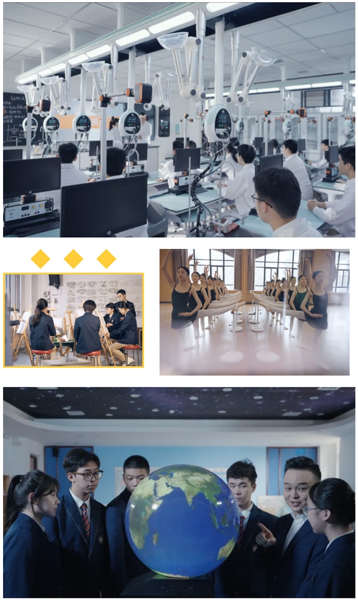 学校拥有理化生探究实验室,录课教室,STEAM教室,通用技术教室,烹饪课教室、独立琴房、健身房等功能部室共60余间,现代化教育教学设施一应俱全。