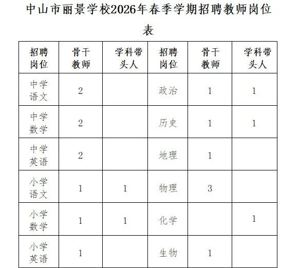 12 年蝉联中山市初中办学质量一等奖。学校现有省市级立项课 题10项,镇校级立项课题34项。因学校发展需要,现诚聘各学科教师。