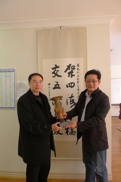 在访问澳大利亚教育管理集团总部时,代表团一行还与澳大利亚教育管理集团总裁李新庆先生、总监王晶女士,以及同在澳大利亚墨尔本访问交流的华中师范大学校长杨宗凯就国际化人才培养、“卓越教师”培养、高等教育信息化建设等进行了座谈交流。同时,代表团一行实地考察了澳大利亚教育管理集团总部云教学实验室的运行情况。云教学实验室是指通过“一站式”应用和“云” 的理念,打破教育的信息化边界,并运用全球教室采用国内外领先的盘古电子双板课堂教学平台、兼容多种移动终端的课堂互动系统、课堂流媒体系统和教室物联网系统,改进教学进度,兼容教学内容,在全球范围内使参与的学生广泛受益。